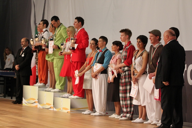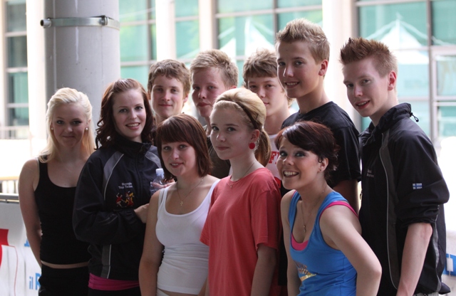 KISARAPORTIT: -------------------------------------------------------------------- Boogie Woogie Word Cup 27.6.2009 Italia, Rimini Teksti ja kuvat: Tommi Koivula Suomalaisparit tanssivat finaalipaikoille Italian boogie woogie maailman-cup osakilpailussa 27.6.2009. Masi Sauren - Matleena Kortesalmi yleisessä finaalin viitosia ja Jani Koivula - Emmiina Lehtinen junnujen finaalin kuutosia! Kisapaikka oli suuri urheiluhallien rypäs keskellä Riminin kaupunkia. Kisatapahtuma oli massiivinen, sillä kisaajia oli muutamien päivien aikana yhteensä noin 30000 henkeä (nollia ei ole liikaa, tanssijoita oli siis kolmekymmentätuhatta henkeä!). Tarjolla oli tanssin kirjoa laajalla skaalalla: yksilölajeja, parilajeja ja joukkuelajeja. Kisahalleja oli neljä ja toimintaa oli neljässä hallissa yhtä aikaa. Samassa yhteydessä oli tanssitarvikealan messut ja kaikki aulatilat olivat täynnä tanssitarvikkeiden myyntiliikkeitä. Koko tapahtuma oli yleisölle avoin ja ilmainen! Järjestäjät saivat siis tulonsa kilpailijoiden osallistumismaksuista ja ilmeisesti messupaikkojen vuokrista. Yksi tapahtuman pääkisoista oli boogie woogien maailmancup-osakilpailu johon Suomi osallistui kahdella yleisen luokan parilla: 1 * Masi Sauren - Matleena Kortesalmi ja 2 * Tuomas Sillanpää - Reetta Koivuniemi ja kolmella junioriparilla: 1 * Jani Koivula – Emmiina Lehtinen, 2 * Samuli Kalliala – Mari Munne, 3 * Arttu Soilumo – Noora Koivula. Kaikki parit tulivat ...kuinkas muutenkaan Finland Boogie Teams tallista Kisajoukkueen Top Teamin parit valmentajineen Suomalaisparien kisa-arviot Yleinen luokka (42 paria) Masi ja Matleena aloittivat suoraan neljännessemistä, joka tanssittiin knock out kierroksena. Vastaan tulivat norjalaiset Christian Moller – Birgit Bikset. Masi ja Matleena tanssivat loistavasti ja selvittivät tiensä semiin. Semissä vastaan tulivat ranskalaiset Guillaume Faure – Roxane Desogus. Vastus oli kovempi, mutta tästäkin suomalaiset menivät selkeästi jatkoon joten finaalipaikka oli lakkarissa. Finaalissa ei ollut edes musiikin kuuntelua saatikka valintaa. Kaikilla pareilla oli eri biisi ja sen kuuli vasta lattialla. Masin ja Matleenan tanssivat toiseksi viimeisenä parina ja heille tuli kehno biisi. Siitä huolimatta he tanssivat hyvän hitaan. He olivat kierroksen viimeisenä parina tanssineiden norjalaisten ohella ehdottomasti hitaan kierroksen parhaat parit. Tuomarit kuitenkin noteerasivat heidät vasta neljänsiksi (tuomarisijoitukset 4. 4. 4. 3. 5.). Nopealla kierroksella Masi ja Matleena tanssivat toisena parina ja musiikin soittaja törttöili oikein pahemman kerran. Biisi lähti soimaan, mutta pysähtyi kesken intron. Biisiä vaihdettiin, mutta sekin pysähtyi pari kertaa. Vasta neljännellä kerralla päästiin liikkeelle, mutta kesken biisiä, joten intro jäi tanssimatta. Kun biisi sitten vielä oli ihan hengetön rallatus oli muille pareille kyllä annettu ihan liikaa etumatkaa. Kaikesta sähläyksestä huolimatta Masi ja Matleena tanssivat ihan kohtalaiset tanssin, mutta ihan parhaimpaansa he eivät päässeet. Tämä näkyi myös tuomariarvioissa (6. 4. 4. 4. 6.). Loppusijoitus 5. sija oli parille pieni pettymys, vaikka se sijoituksena on loistava. Masi ja Matleena Tuomas ja Reetta aloittivat suomalaisosuuden yleisen luokan karsinnoilla. Ensimmäisen kierroksen jälkeen he olivat 15 sijalla ja 5 pääsi jatkoon. Toiviokierroksella he sijoittuivat 9 sijalla ja 4 pääsi jatkoon. Lopputuloksissa he olivat 25 sijalla jota voi pitää ihan kohtalaisen hyvänä sijoituksena. Paukkuja löytyy vaikka finaaliin asti kun kohdalle osuu nappisuoritus. Tuomas ja Reetta Juniorit (29 paria) Kaikki Suomen junnuparit aloittivat rankinsijoituksensa perusteella suoraan semifinaalikierrokselta. Junioreissa kaikki kierrokset tanssittiin normaaleina pistekierroksina. Karsinnoissa kolme paria kerralla lattialla, semissä kaksi paria ja finaalissa yksi pari kerralla. Semissä tuomarit arvioivat parit normaalisti ja tietty määrä pareja saa pistesaaliinsa perusteella rastin jatkopaikalle. Pisteitä laskettaessa viidestä tuomarista paras ja huonoin putoaa pois ja loput kolme määrittävät pistesaldon. Jatkoon pääsyyn vaikuttaa ensin rastimäärä ja sitten pistesaldo. Jani ja Emmiina tanssivat ekan kierroksen kohtalaisesti ja he menivät finaalin semin neljänneksi rankattuna parina. Finaalissa oli pientä yliyrittämistä ja suorituksesta puutui rentous. Biisikään ei ollut mikään herkkupala (finaalin ainoa outo biisi). Tuomarisijoitukset olivat 5. 6. 6. 6. 4. joilla lohkesi 6. sija. Pari oli finaalipaikkaan tyytyväinen, mutta parannettavaa jäi vielä. Jani ja Emmiina nousivat tässä kisassa maailman listan ykkösiksi! Jani ja Emmiina Arttu ja Noora tanssivat hyvän semifinaalikierroksen. Tanssi oli rentoa ja vapautunutta ja finaalipaikka oli niin lähellä kuin se voi olla. He saivat suomalaisjunnujen parhaat pisteet, mutta vain yhden jatkorastin, joten finaalipaikka jäi harmittavan pienestä kiinni. Loppusijoitus oli hienosti 8. Hieman vielä vahvuutta perustekniikkaan ja musiikin tulkintaan, niin elokuun MM-kisoista voidaan odottaa vaikka mitä. Arttu ja Noora Samuli ja Mari tanssivat semifinaalikierroksella kohtalaisen hyvää perustanssia ja finaalipaikka odotettiin. Pari sai suomalaisjunnuparien toiseksi parhaat parhaat pisteet, mutta vain yhden rastin, joten finaalipaikka jäi haaveeksi. Tanssista jäi ehkä hieman rauhaton vaikutelma ja kuvio-osastolla olisi saanut olla hieman enemmän musiikkiin istuvaa yllätyksellisyyttä. Loppusijoitus 11. oli kuitenkin hyvä ja se vahvistaa parin asemaa maailmanlistan kärkisijoilla. Samuli ja Mari Yleisen finaaliarviot 1. William ja Maeva FRA olivat ykkösinä oikealla paikallaan vaikka hitaalla kierroksella olisin sijoittanut heidät vasta kolmansiksi. He uusiutuvat joka kisassa ja ottavat riskejä joka tekee tanssista spontaanin oloista. Pari ottaa yleisön aidon oloisella asenteella ja heistä on helppo pitää 2. Marco ja S