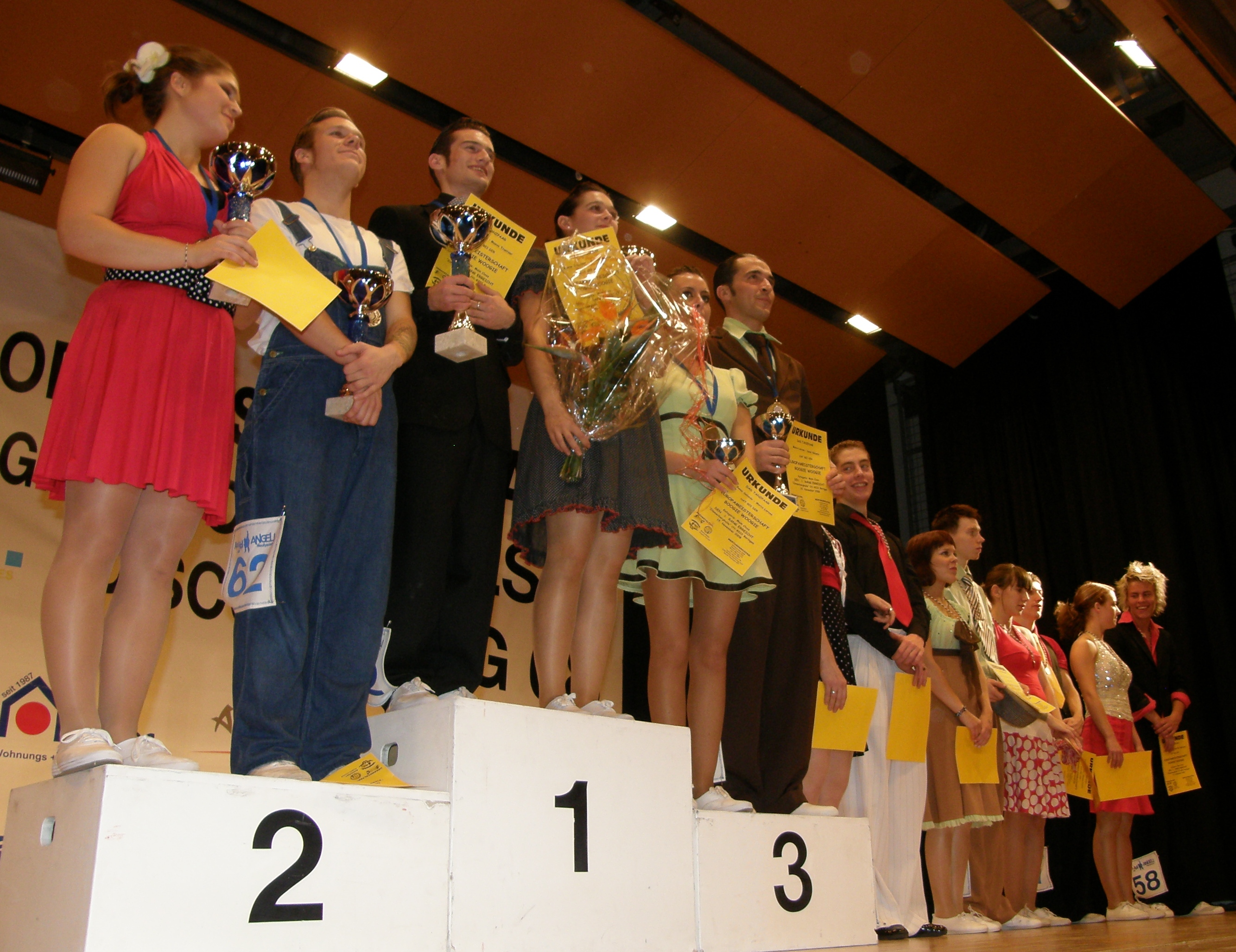 KISARAPORTIT: Boogie Woogie EM, Schafhausen, Sveitsi 15.11.2008 Kisapaikka oli sveitsiläiseen tapaan, suuri urheiluhallin ja teatterin risteytys. Kisaajat tanssivat estraadilla ja yleisö istui pöydissä. Samassa yhteydessä kisattin myös IDO:n alainen Salsan ja Disco swingin EM kisa joten katsottavaa riitti. MM ja EM kisoissa kaikki tanssijat karsivat alusta asti, eli wr-sijoituksella ei pääse suoraan nejännesfinaaliin kuten BDWC kisoissa. Neljännesfinaali ja semifinaali tanssitaan kuten karsinnat (ei knockout kierroksia). Suomi osallistui kisaan viiden parin joukkueella. Main Class: - Masi Sauren - Matleena Kortesalmi - Aki Uppa - Marja Hietala - Tuomas Sillanpää - Reetta Koivuniemi Juniors: - Jani Koivula - Emmiina Lehtinen - Samuli Kalliala - Mari Munne Coach: Pirjo ja Tommi Koivula Suomalaisparien sijoitukset Main Class (32 paria). Masi ja Matleena tanssivat ensimmäiseltä kierrokselta suoraan semifinaaliin ja sieltä finaaliin. Finaalin hitaalla kierroksella pari tanssi kuudenneksi ja nopealla hienosti kolmanneksi. Lopullinen sijoitus oli yhtä parempi kuin MM-kisoissa eli 5. Palkintopalli oli niiiiin lähellä. Tuomas ja Reetta tanssivat kaksi kierrosta sijoittuen lopputuloksissa sijalle 25. Sijoitus olisi voinut olla parempikin, sillä heidän tanssinsa onnistui melko hyvin. Kun vielä otetaan huomioon, että tämä oli heidän ensiesiintymisensä kansainvälisillä areenoilla oli huikeaa, että heidän taakseen jäi mm. Saksan ykköspari Thomas BACHMANN - Doreen "suomalaisille Boogie Nightista tuttu" WEISSER. Aki ja Marja tanssivat kaksi kierrosta sijoittuen lopputuloksissa sijalle 28. Tämä buggia ykköslajinaa tanssiva pari on viime aikoina lisännyt panostustaan boogieen ja treenien kisavedoissa on jo nähty väläyksiä tulevasta. Tässä kisassa he eivät kuitenkaan yltäneet parhaimpaansa. Plussat boogiemaisesta tyylistä ja rock henkisestä asenteesta. Juniors (24 paria). Junnuissa Jani ja Emmiina tanssivat karsinnoista suoraan semifinaaliin. Semifinaalissa he saivat vaikean biisin, mutta selvisivät siitä loistavasti. Finaalipaikka aukesi kolmanneksi parhailla pisteillä, joten hyvältä näytti. Finaalissa pari sortui hienoiseen yliyrittämiseen ja sijoitukseksi tuli 7. sija. Loistava kisa joka taapuksessa Janilta ja Empulta! He tanssivat junioreissa vielä ensi vuoden, joten vielä jäi tavoittelemista. Suomen toinen junnupari Samuli ja Mari tanssi myös loistavasti. Kisaa edelsi jännityksen täyteinen viikko, sillä Mari sairastui kuumeeseen viikon alussa ja oli epävarmaa pääsevätkö he lainkaan kisaan. Vielä lähtöpäivän aamuna pohdittiin onko viisasta lähteä ja tehtiin päätös, että lähdetään mutta katsotaan sitten kisapäivän aamuna kisataanko vai ollaanko katsomossa. Aamulla kuumetta ei ollut, mutta maha oli sekaisin... mitä tehdä? Päätettiin kisata ja hyvinhän siinä sitten kävi. Pari oli harmittavasti ensimmäinen joka ei päässyt suoraan ensimmäisestä karsinnasta jatkoon. Toiselta kierrokselta mentiin sitten selkeästi semifinaaliin. Finaaliin asti ei tällä kertaa paukut vielä aivan riittäneet ja loppusijoitukseksi tuli 13 sija. Hyvä suoritus toipilasparilta. Hyvältä näyttää muutenkin sillä he ehtivät tanssia junioreissa vielä kolmet MM ja EM kisat. Yleisiä huomioita - Yleisen luokan finaaliin ei päässyt yhtään norjalaisparia!? - Aikuisten luokassa tehdään tällä hetkellä vähemmän akroiksi luokiteltavia kuvioita kuin vuosi/pari sitten. Syynä voi olla se, että pahimmat akrokikkailijat ovat jääneet "eläkkeelle" ja heidän "jälkeläisensä" eivät pärjää. Toivottavasti tämä kehitys jatkuu. - Kuukauden takainen MM-kolmospari (ruotsin Rikard ja Johanna) oli tässä kisassa vasta sijalla 12! - Junnuissa näkyi taas ensimmäisellä kierroksella jonkin verran akroiksi luokiteltavia kuvioita ja varoituksiakin annettiin. Seuraavalla kierrokselle ei vastaavia kuvioita nähty. Systeemi on se, että ensin tulee varoitus ja seuraavalla kerralla diskataan. Tämä voi käytännössä johtaa siihen, että jos alla ei ole yhtään varoitusta, voi finaalissa tehdä mitä vain, kun ei enää ehditä diskata. Tällaista ei vielä tässä kisassa näkynyt. - Korjaus Ruotsin MM-kisaraporttiin jossa kirjoitin, että Saksalla ei ole kovia pareja aikuisissa eikä junnuissa. Tämä koskee vain aikuisia. Junnujen voittaja tässä kisassa oli todella kova saksalaispari Florian POGATS - Kristina SCHNEIDER. Tämä pari oli ykkönen myös minun arvioissani, vaikka tytön askellus olikin heikossa rytmissä. Toisaalta kuukautta aikaisemmin tämä pari oli MM-kisoissa vasta sijalla 11. Boogie yleisen luokan finaaliarviot 1. William ja Maeva olivat taas kerran vahvoja ja ansaitsivat voittonsa. He osaavat loistavasti hyödyntää vahvuuksiaan ja aseman vahvistuminen tuo tanssiin rentoutta joka näkyy laatuna. Tosin tässä kisassa heille sattui nopealla kierroksella aika paha vientisössi, mutta se ei vaikuttanut lopputulokseen. En tiedä johtuiko ko. virheestä, mutta Italian tuomari sijoitti heidät ko. kierroksella viimeisiksi! Minun arviossani ykkösiä 2. Markus ja Frida ovat ehdottomasti tämän hetken paras ruotsalainen boogie pari. Heillä on omintakeinen räväkkä tyyli, jossa tosin viime aikoina on näkynyt melkoisesti liikaa avoimia ennalta harjoiteltuja osioita. Muiden ruotsalaisten imussa oikeasti rock-henkinen Markuskin sortuu aina välillä lindymäiseen liikkeeseen ja halpoihin kasikuvioihin, mutta pohjalla on kuitenkin selkeästi boogiemainen asenne. Finaalin nopealla kierroksella he onnistuivat suorituksessaan loistavasti ja tanssi näytti spontaanilta. Heillä oli päivän paras show ja se nosti heidät kisan kakkosiksi. Muilla osa-alueilla he ovat sen verran muita huippupareja heikompia, että en olisi nostanut heitä ihan näin korkealle. Toisaalta olen kyllä mielissäni, että spontaania ja räväkkää tanssia palkitaan. Minä olisin sijoittanut heidät kolmosiksi. 3. Italialaiset Marco ja Sonia ovat