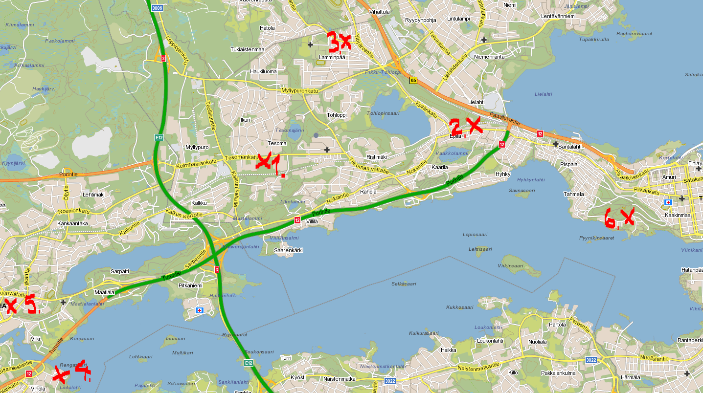 Kilometrin päässä on iso ABC huoltoasema palveluineen.